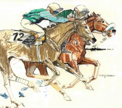SPORT. - Pferderennen. - Zwei Rennpferde mit Jockeys im Finish.