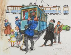 STRASSENBAHN. - As Stangerl is raus. Humoristische Darstellung zur Münchner Straßenbahn.