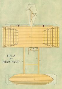 Planche III. Das berühmte Doppeldecker-Motorflugzeug der Gebrüder Wright. - Die Erklärungen auf einem extra Blatt angeheftet. (Artikelnr. 21659BG)