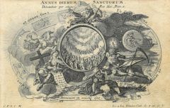 JÜNGSTES GERICHT. - Oben mittig Christus als Weltenrichter, umgeben von Heiligen und Engeln, zu seinen Füßen Justicia mit verbundenen Augen, einer Waage und nach dem Schwert greifend. Darunter die Sünder im Fegefeuer.