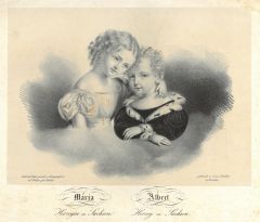 ALBERT, König von Sachsen (1828 - 1902). - Halbfigur nach halblinks als Kind, mit hermelinbesetztem Jäckchen, neben ihm seine ältere Schwester Marie (1827 - 1857).