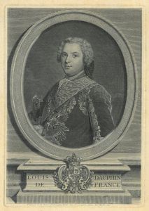 LUDWIG FERDINAND, Dauphin von Frankreich (1729 - 1765). - Halbfigur nach halblinks im Oval, in bestickter Hofkleidung mit Ordensschärpe, unten Wappen und Inschrift.