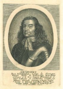 ALBEMARLE, George Monk, Duke of (1608 - 1670). - Brustbild nach halblinks des englischen Generals, in Rüstung, unten Inschrift.
