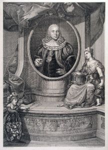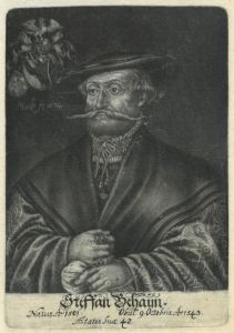 Kupferstich von J. Sandrart nach G. Strauch, dat. 1657, 21 x 14 cm.