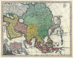 Gesamtkarte von der arabischen Halbinsel bis Japan und der südostasiatischen Inselwelt. Mit großer figürlicher Titelkartusche mit Druckprivileg unten links und Erklä... (Artikelnr. 1365GG)