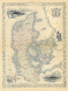 Karte der im Kleinen Belt gelegenen Insel. Mit zwei schönen altkolorierten Kartuschen. Auf der vollen Seite mit der Beschreibung. (Artikelnr. 27053CG)