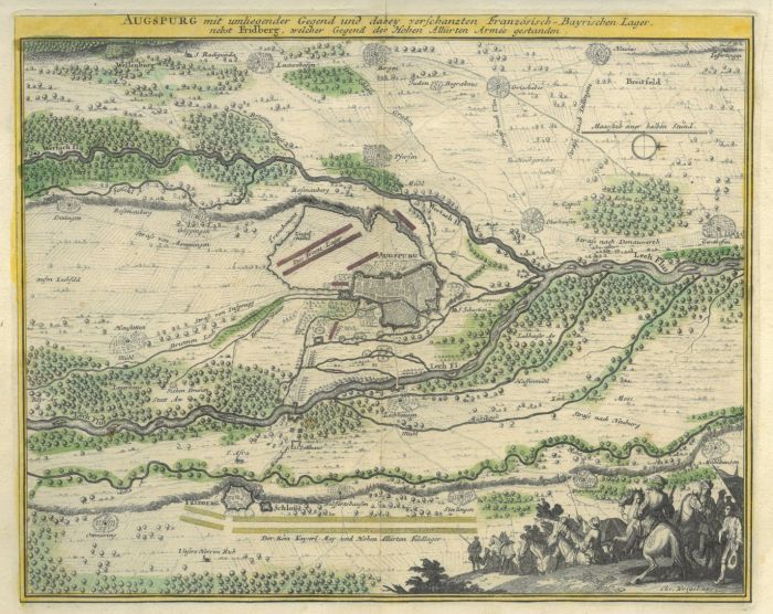 Augspurg mit umliegender Gegend und dabey verschanzten Französisch-Bayrischen Lager nebst Friedberg, welcher Gegend der Hohen Alliirten Armée gestanden.