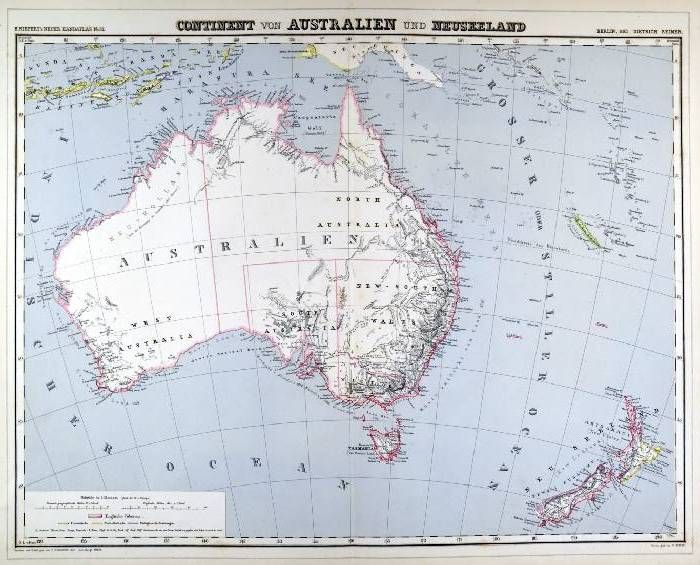 AUSTRALIEN. - Karte. - Continent von Australien und Neuseeland.