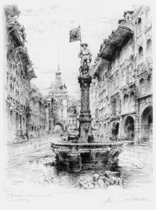 Zustand B. Vom Künstler mit Bleistift handsigniert und i.d. Platte sign. - Der in Erfurt geborene Maler und Illustrator Paul Geissler (1881 - 1965) radierte Ansichten aus Deutschland, Europa und den USA. Er gehört "zu den ersten deutschen Meistern der Radierung mit Architektur- und Landschaftsmotiven" (Richard Braungart).