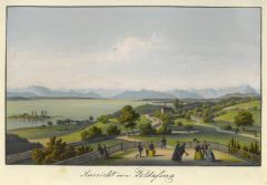 18 x 21 cm. Mehrf. gefalt. Stahlstichpanorama von Georg Michael Kurz (ca. 20,5 x 420 cm). OHLwd.