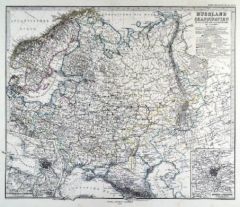 Espenhorst, PP 2.1.1.1.8. - Aus: A. Stieler's "Hand-Atlas" (8. Ausgabe, Auflage 1891). - Übersichtskarte mit drei Nebenkarten von "Russland'... (Artikelnr. 19182BG)
