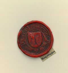 Siegellackabdruck (von den originalen, damals in den Kommunen noch vorhandenen Siegeln) aus der Sammlung des bekannten Heraldikers Otto Hupp (1859-1949). Er sammelte diese kommunalen Siegel, von denen i... (Artikelnr. 17377BG)