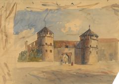 Der Turm des Angertores wurde bereits 1807, das hier abgebildete Vortor mit den Flankentürmen dann 1869 abgerissen. - Skizzenhaft und nicht ganz fertig ausgeführtes Aquarell mit einigen Pins... (Artikelnr. 43638EG)