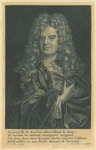 BOILEAU-DESPREAUX, Nicolas (1636 - 1711). - Halbfigur nach halblinks des französischen Dichters, unten Verse.