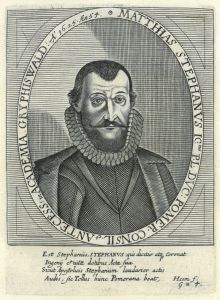 STEPHANI, Matthias (1576 - 1646). - Brustbild nach viertelrechts im Schriftoval des Juristen, Professors in Greifswald und Rektors in Soldin, unten Verse.