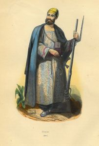 TÜRKEI. - Tracht. - Omar, Heerführer unter Mahomet. In Pluderhosen, mit pelzgefüttertem Umhang und federgeschmücktem Turban, seitlich ein Schwert.