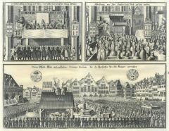 Kupferstich von Caspar Merian, 1658, 7,5 x 36 cm bzw. 15,5 x 36 cm.