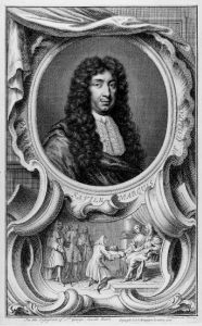 HALIFAX, George Savile Marquis of (1630 - 1695). - Brustbild nach halbrechts im ornamentalen Schriftoval des Geheimsiegelbewahrers unter König Karl II. Stuart, Präsident des Geheimen Rats unter Jacob II. Stuart und Präsident des Oberha