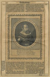 Kupferstich von J.C. Gutwein, dat. 1686, 12 x 8,5 cm.