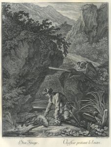 Kupferstich von Johann Baltasar Probst nach Johann Elias Ridinger bei Jeremias Wolff, 1722, 21 x 33,5 cm.