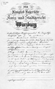 Gezeichnet: "Behr". M.W.J. Behr war seit 1821 auf Lebenszeit gewählter Bürgermeister von Würzburg, 1832 amtsenthoben und verhaftet, dann in Festungshaft, 1847 begnadigt, 1848 Mitglied der Frankfurter Nationalversammlung. - Mit Aktennotiz, ge... (Artikelnr. 12474AG)