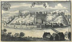 Kupferstich von Merian, 1653, 14,5 x 38,5 cm (seitlich angerändert). (Artikelnr. 10527CG)