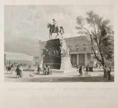 FRIEDRICH DER GROSSE (1712 - 1786). - Denkmal. - Denkmal Friedrichs des Grossen von Rauch. Blick auf das von Rauch und Schinkel entworfene Denkmal mit lebhafter Staffage.