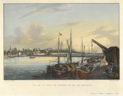MANNHEIM. - Mannheim. Gesamtansicht über den Rhein, mit figürlicher Staffage im Vordergrund.