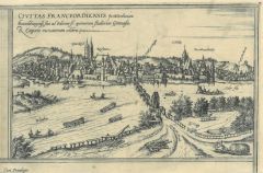 FRANKFURT/Oder. - Gesamtansicht von einer Anhöhe, im Vordergrund Belagerung durch die Schweden 1631.