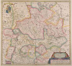 Koeman Me 57, 38. - Karte des Bistums mit altkolorierter Titelkartusche unten rechts und Wappen oben links. Mit mehreren in die Karte eingearbeiteten kleinen Wa... (Artikelnr. 2762CG)