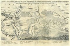 LAUTERECKEN. - Grundriß und Entwurff etlicher ohrt der Chur Pfaltz. Zeigt die Rheinpfalz zwischen Lauterecken und Kirchheimbolanden mit Einzeichnung von Truppenstellungen und den Orten als kleinen Vogelschauansichten.