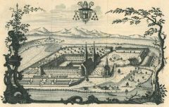 Kupferstich aus C. Stengel, Monasteriologia, Augsburg, 1619, 12,5 x 17,5 cm.