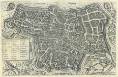 Schefold 40162: "Aus Janssonius 1657", dem Städtebuch. - Insgesamt gering gebärunt und knittrig, mit einem schmalen Rand um die Einfassungslinie. Verso der Rand... (Artikelnr. 20099BG)