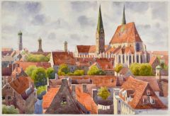 AUGSBURG. - Dom. - Augsburg - Blick auf den Dom. Ansicht über die Dächer der Altstadt hinweg, links weitere Kirchtürme.