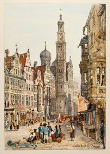 Kol. Lithographie von Samuel Prout, um 1830, 40,5 x 27,5 cm.