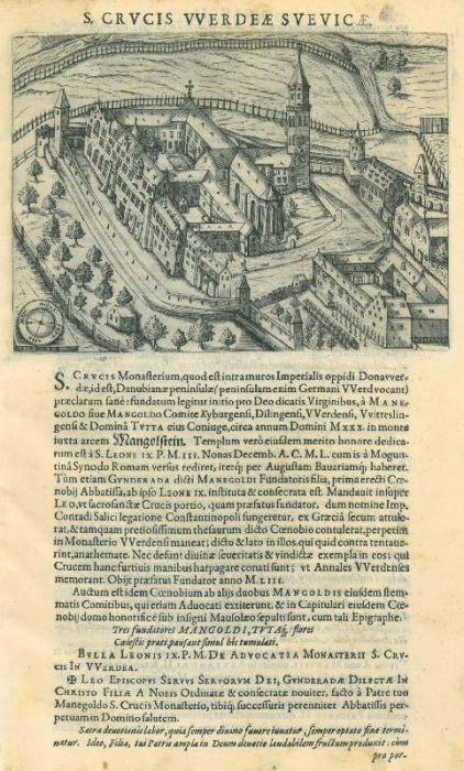 DONAUWÖRTH. - Hl. Kreuz. - S. Crucis Werdeae Suevicae. Ansicht der Klosteranlage von einem erhöhten Standpunkt aus.