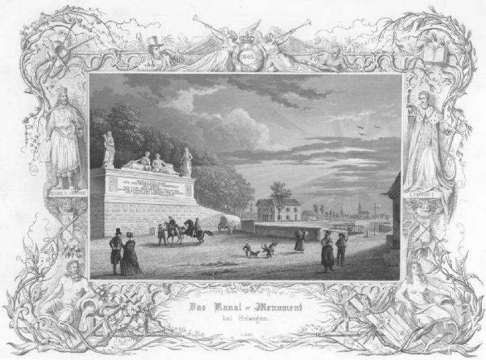 ERLANGEN. - Ansicht mit dem Kanal-Monument, rechts hinten Kirche.