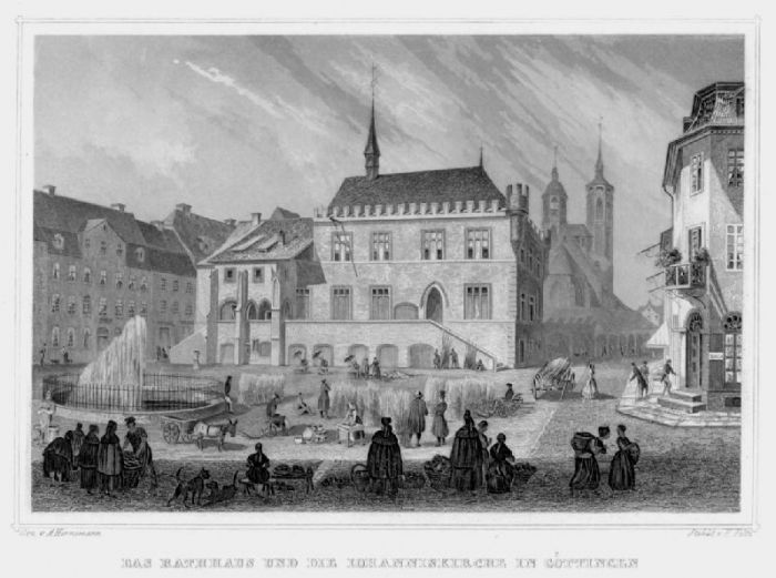 GÖTTINGEN. - Hübsche Ansicht mit Rathaus und Johanniskirche.