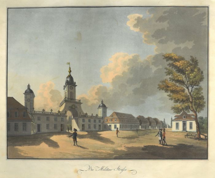 Die Militair Strasse, mit dem geplanten Nordtor und den Wohnungen der Offiziere.