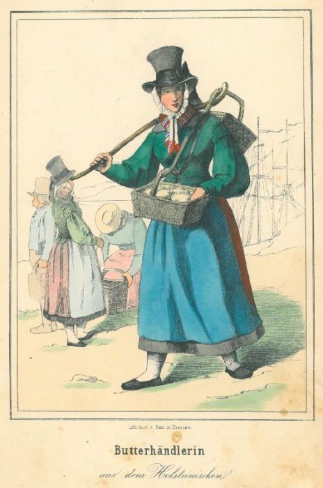 HOLSTEIN. - Tracht. - Butterhändlerin in farbenfroher Tracht.