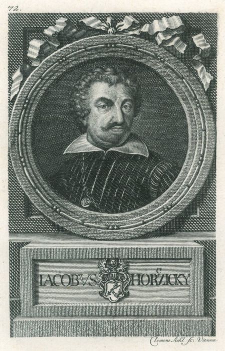 HORCZICKY a Tepenecz, Jacobus (1575 - 1622). - Brustbild nach halbrechts im Rund des Alchemisten und Leibarztes Kaiser Rudolphs II., unten Wappen und Inschrift.