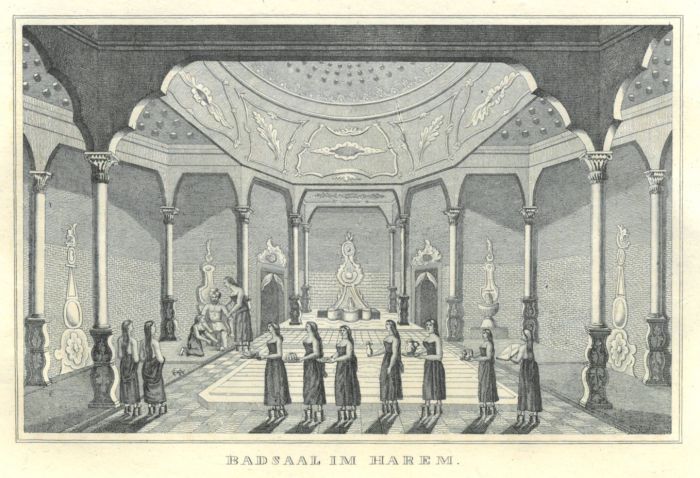ISTANBUL. - Blick in den "Badsaal im Harem", neun schöne Frauen bringen dem Sultan ihre Gaben.