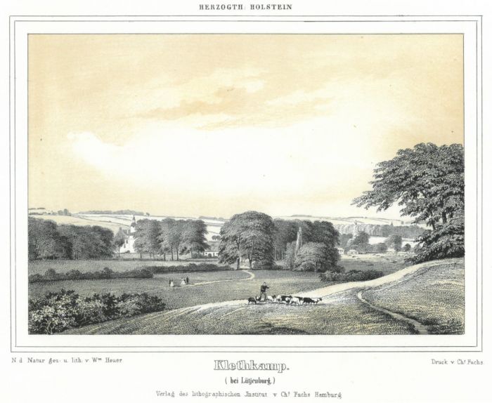 Lithographie mit Tonplatte von Heuer bei Fuchs, um 1850, 14 x 20 cm.