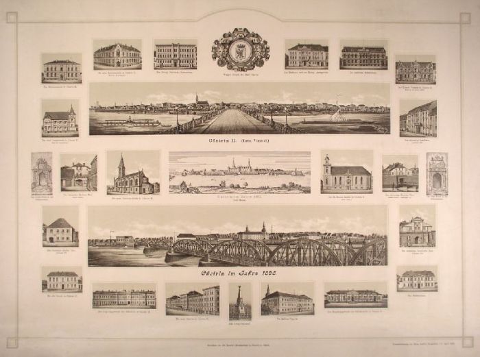 KÜSTRIN. - Gesamtansicht im Jahre 1893 (10 x 47 cm), umgeben von 25 weiteren Ansichten.