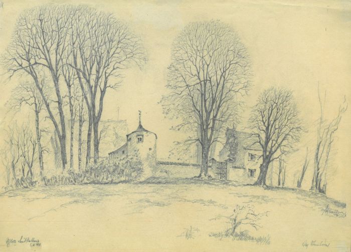 Bleistiftzeichnung auf Bütten von August Steinborn, bez., zweifach sign. und dat. "5.2.(19)44", 27 x 40 cm.