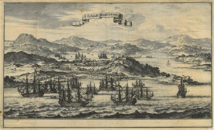 MARTINIQUE. - t Eylandt Martinique. Gesamtansicht mit vielen Segelschiffen.