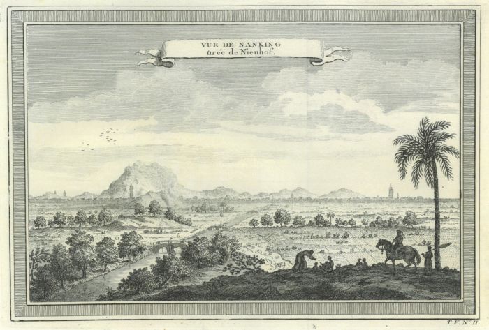 NANKING. - Aussicht von Nanking auf den Neuhof. Blick über Felder und Fluß auf die Stadt.