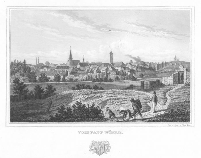 Aus "Das malerische Pegnitztal". Mit Stadtwappen unter der Darstellung.
