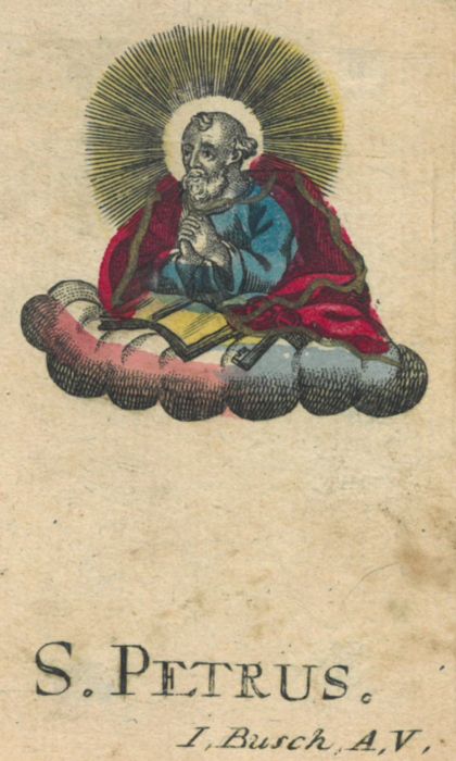 S.Petrus. Brustbild des Heiligen mit Schlüssel und Buch, auf einer Wolke betend.