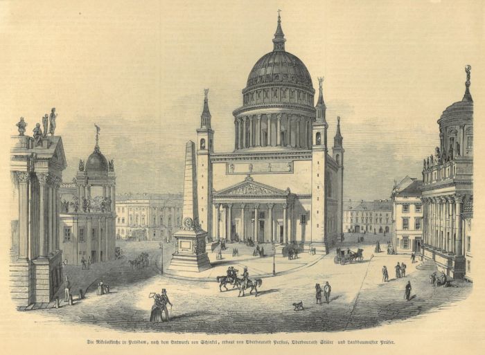 POTSDAM. - Ansicht mit Nikolaikirche und lebhafter Straßenszenerie.